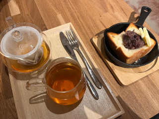 あんバタートースト食べて